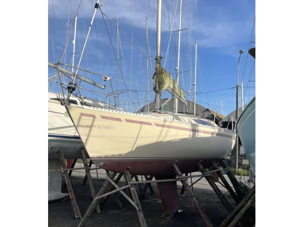 "Sarsfield" has the advantage of a 2008 20HP engine. She has a few scratches on the topsides but none appear to be serious. She requires a bit of T.L.C. but she is in good condition for her age.