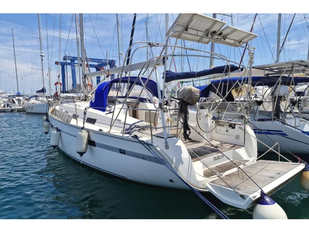 The Bavaria Cruiser 40 is the only model in the range at this size to feature twin helm stations — giving excellent visibility and sail control that single-helm contemporaries can't match. Combined with a fold-down swim platform, she is ideally set up for Mediterranean cruising and anchoring.