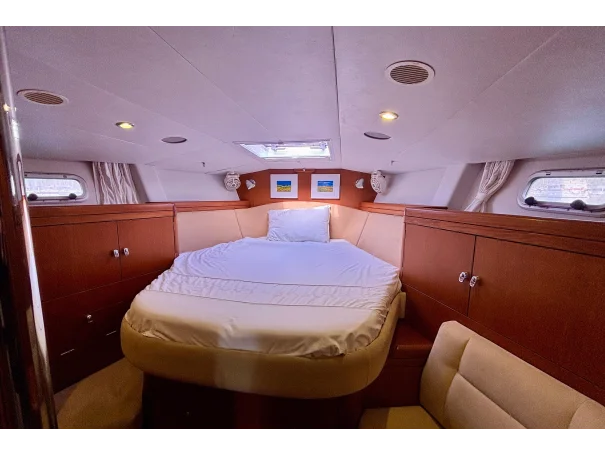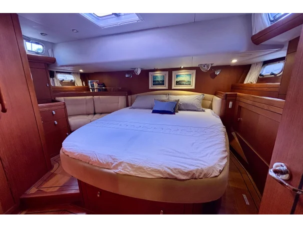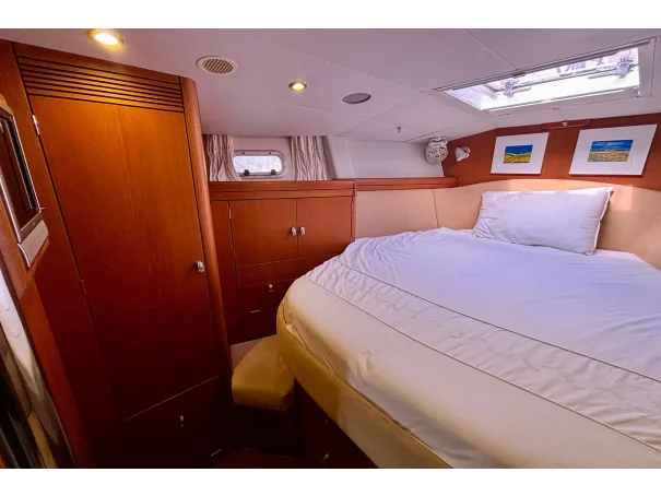 Forward Cabin: This cabin features a large double berth, overhead hatches for natural light and ventilation, and ample storage in drawers and hanging lockers.