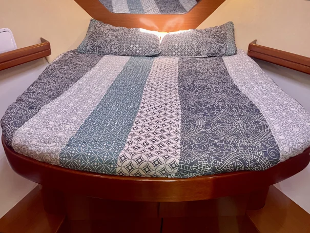 The interior features a fitted galley, two cozy cabins with a separate head compartment, and a saloon that conveniently converts to a double berth. These thoughtful details create an inviting atmosphere, perfect for relaxing after a day of adventure.