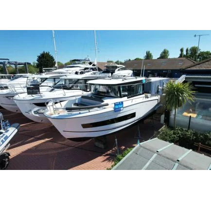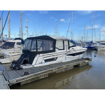 This Jeanneau Merry Fisher 895 Sport is a 2022 build year but to a 2023 model year. She has an outstandingly high specification which includes the largest Yamaha 2 x 250hp SBW engines with only 68 hours run time. She is also fitted with just some of the following options; manual sliding roof hatch, premier pack, comfort pack, folding side benches port/starboard, roof storage rack, swim platforms, aft cockpit teak table, deck search light, saloon berth, curtains, Flexiteek decking, Raymarine 12inch axiom, Webasto heating, Fusion stereo with signature speakers and the upgraded 250hp steer by wire Yamaha engines with autopilot. There are a significant number of bespoke custom options that have been fitted to her to further enhance the owner's and guests time on board. Described as the sporty 'SUV' of the sea, the 895 sport is an incredibly versatile boat that allows for a range of boating activities.