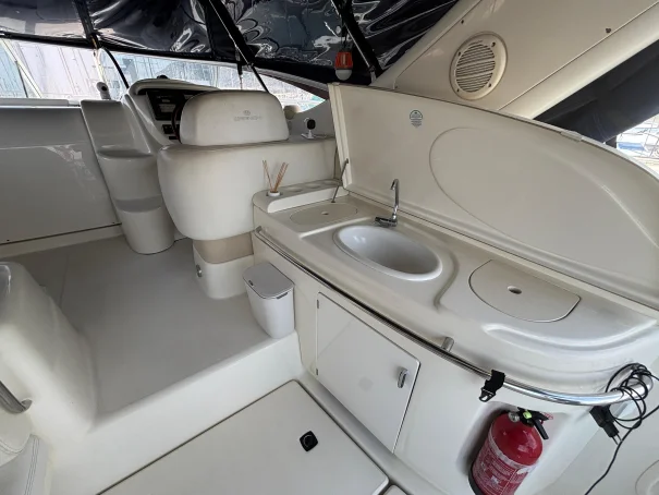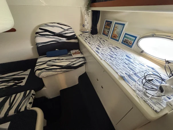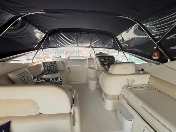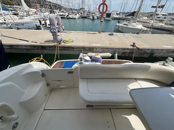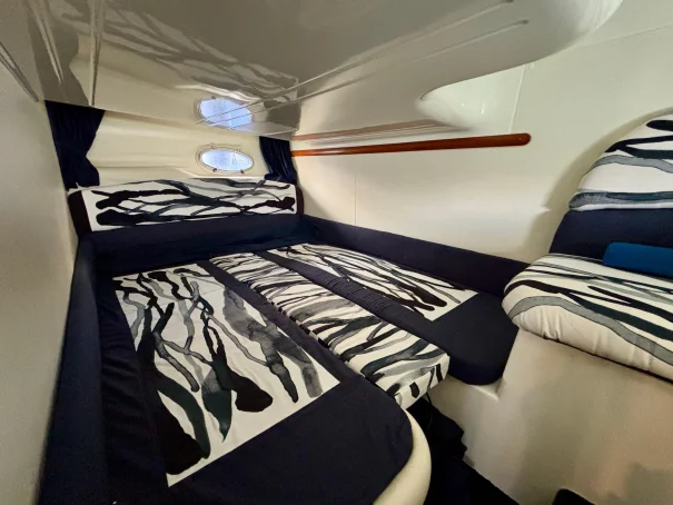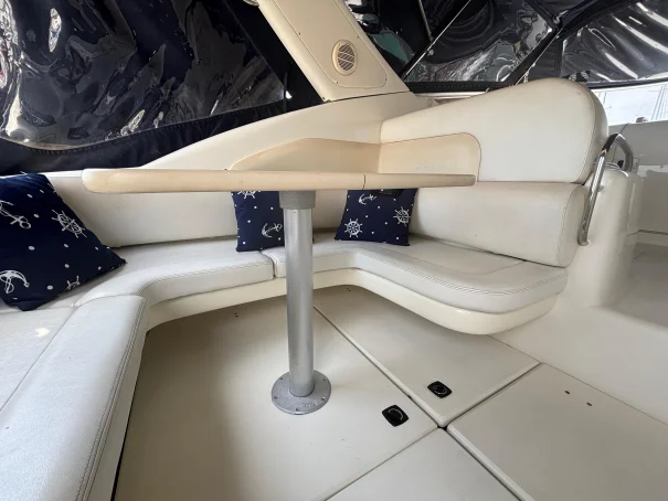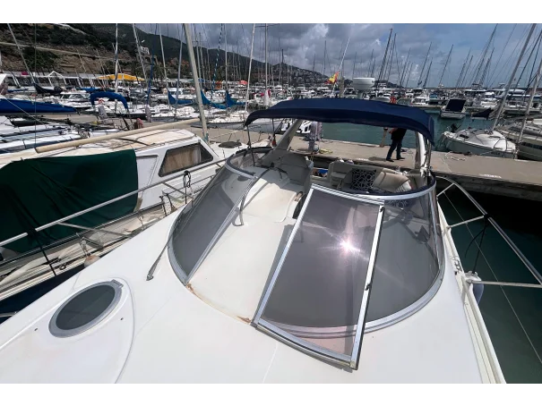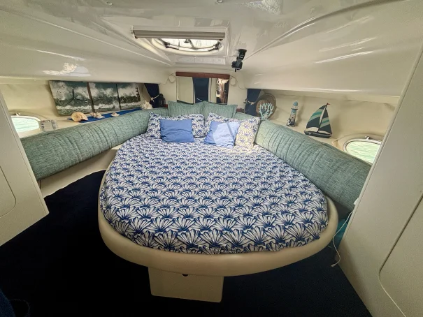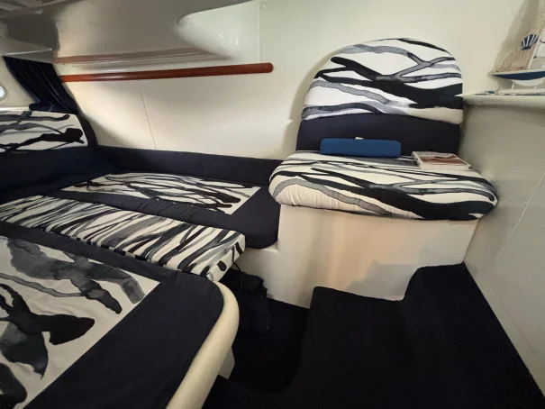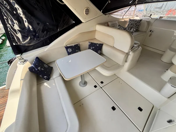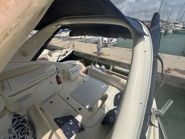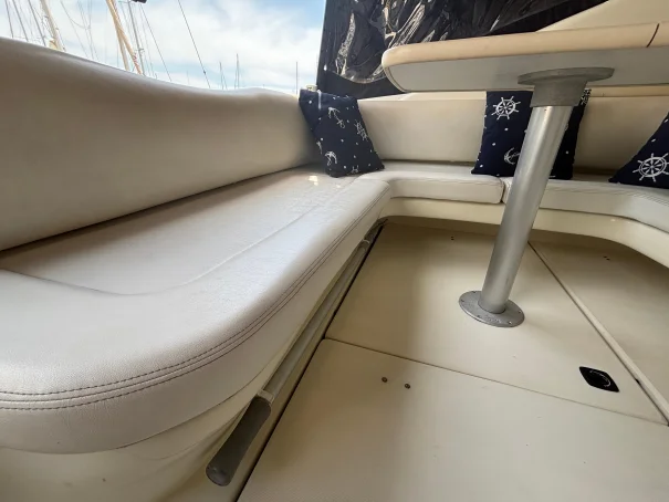 Exterior y Comodidad: El área de la cabina está diseñada para relajación y entretenimiento. La mesa de la cabina se puede quitar para transformar el espacio en una zona de solárium, ideal para disfrutar de cálidos días mediterráneos anclado o en puerto. Este Cranchi Zaffiro 34 combina rendimiento, elegancia y comodidad—ideal para familias, parejas o amigos que buscan navegar con estilo.