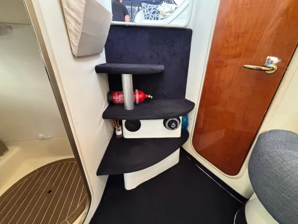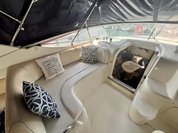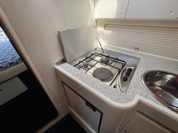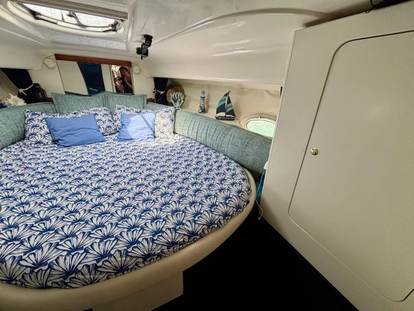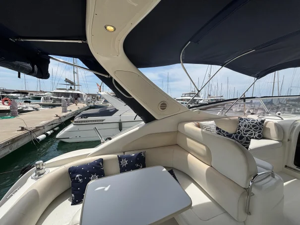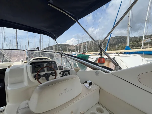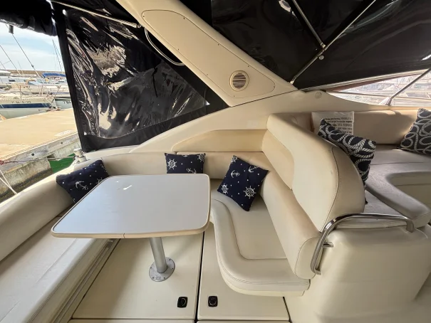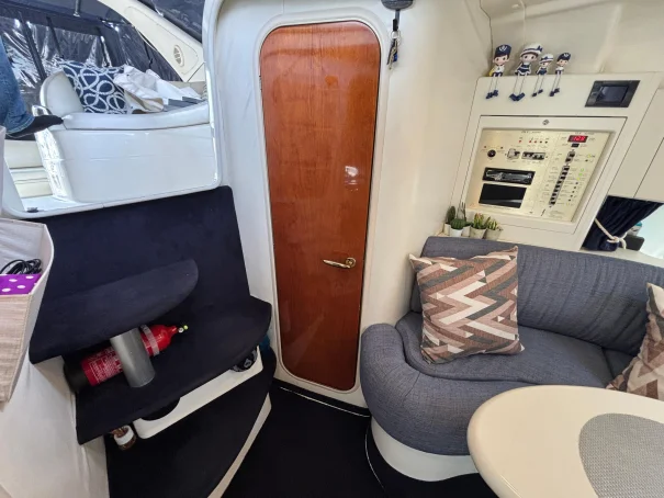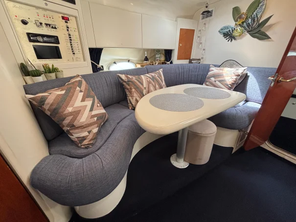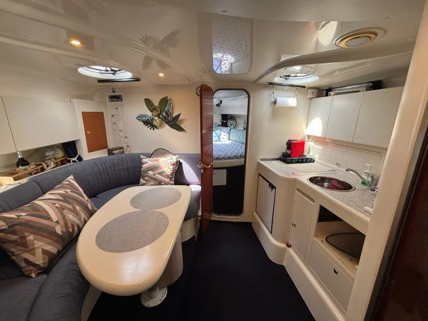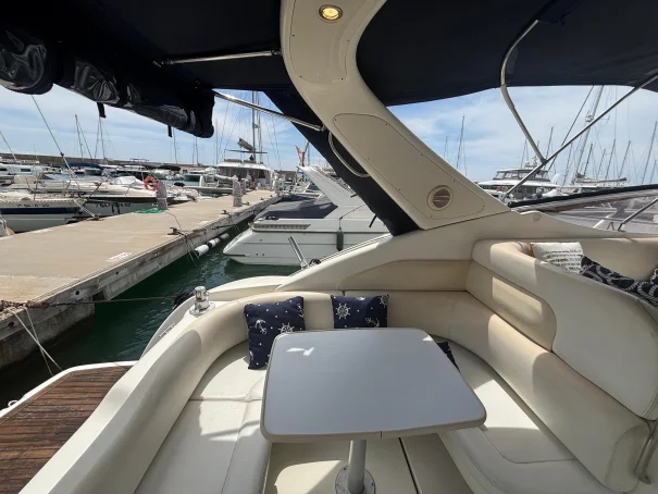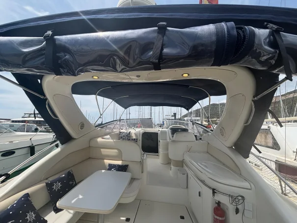 Exterior y Comodidad: El área de la cabina está diseñada para relajación y entretenimiento. La mesa de la cabina se puede quitar para transformar el espacio en una zona de solárium, ideal para disfrutar de cálidos días mediterráneos anclado o en puerto. Este Cranchi Zaffiro 34 combina rendimiento, elegancia y comodidad—ideal para familias, parejas o amigos que buscan navegar con estilo.