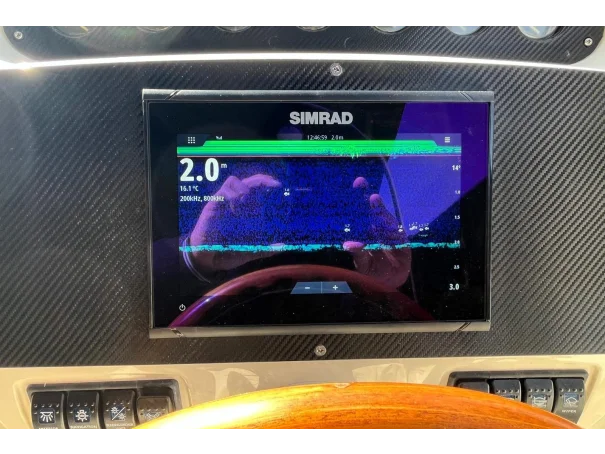 Antifouling y Anodos hechos en 2025, nueva plataforma de baño en 2025 y instalación de un nuevo plotter Simrad de 9 pulgadas con sonda nueva.