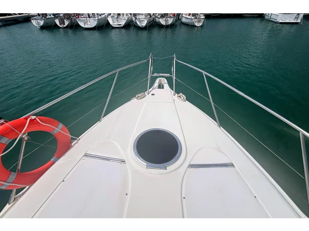 Exterior & Comfort: The cockpit area is designed for relaxation and entertaining. The cockpit table can be removed to transform the space into a whole sunbathing area, ideal for enjoying warm Mediterranean days at anchor or in port. This Cranchi Zaffiro 34 combines performance, elegance, and comfort—perfect for families, couples, or friends looking to cruise in style. The Cranchi Zaffiro 34 is a planing-hull motor yacht designed to rise and glide on top of the water at higher speeds. It reaches cruising speeds of around 20-22 knots and a top speed of 30+ knots. These characteristics make it ideal for fast coastal cruising and economical travel. Maximum number of persons onboard: 12