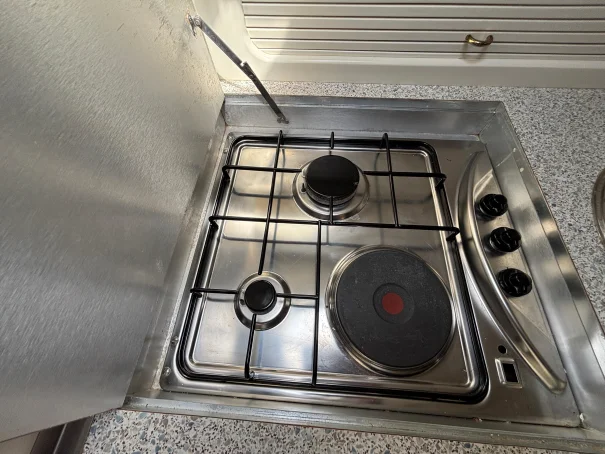 Galley: Equipped with an induction cooktop. A gas stove has also been installed, but it is currently disconnected and out of operation.