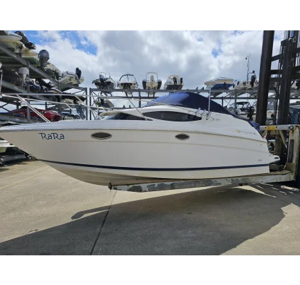 She has been well cared for by her current owner having been last served in June 2024. She has a great specification including Lenco trim tabs, bow thruster, Suzuki engine display, Lowrance GPS / chart plotter, electric windlass, holding tank, depth sounder, VHF radio, cockpit shower, cockpit fridge, battery charger and much more. Accommodation :