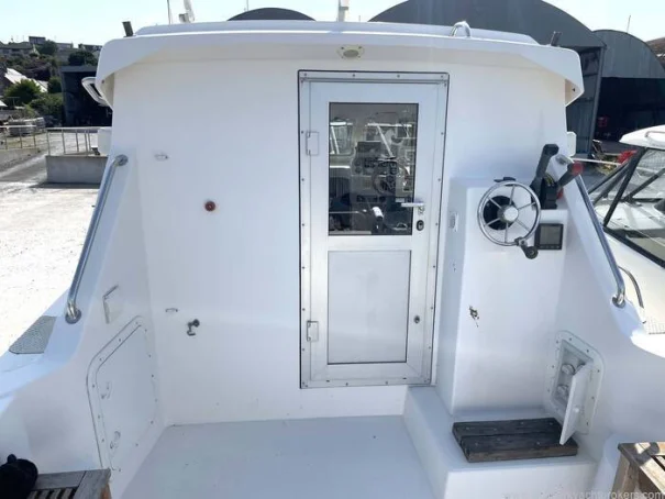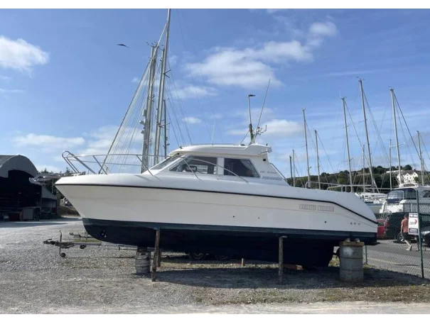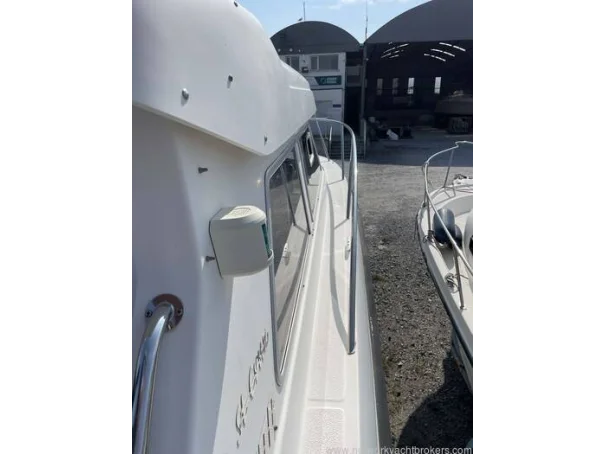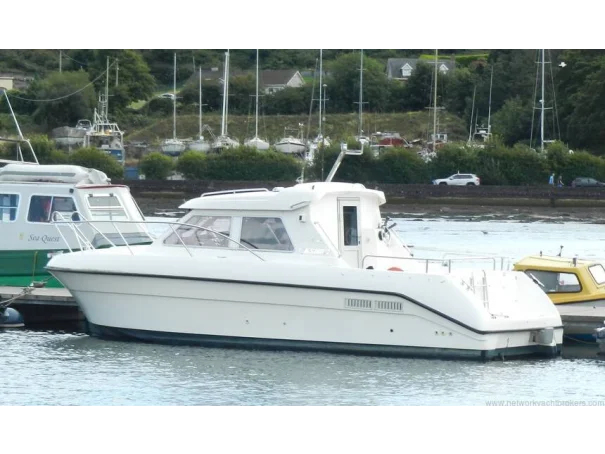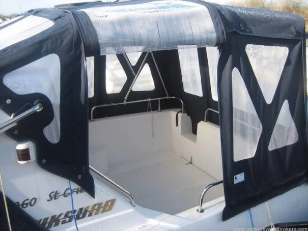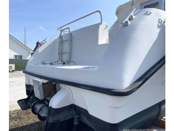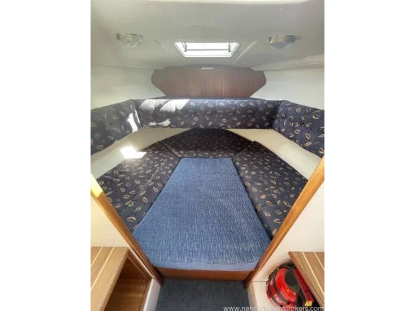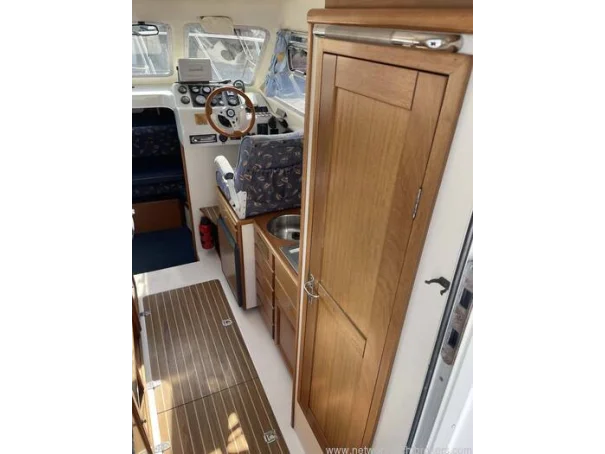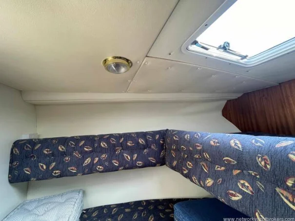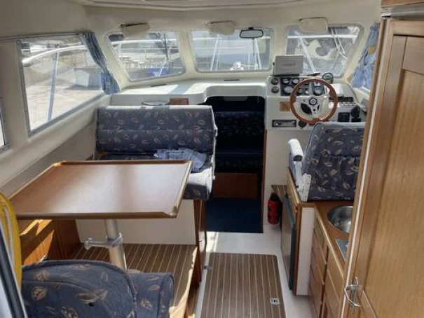 This 2002 Viksund 260 St. Cruz has been very well looked after and comes with a well maintained shaft driven 150hp Volvo diesel engine with about 700 engine hours. Her inventory includes, bow thruster, 2023 stern thruster, four berths, Garmin 751 GPS/plotter, Garmin Sonar Striker Plus 7, B&G V20 DSC VHF, removable davits, heating, shore power, cockpit tent, transom mounted auxiliary outboard bracket and more. She really is excellent value and viewing is recommended. Accommodation : Saloon/Wheelhouse: Dinette to port that can seat four. The table can drop to convert into a double berth (no cushion). Helm station with seat to starboard and crew seat opposite to port. Hanging locker and curtains. Galley: is aft of the helm to starboard, two burner paraffin cooker, stainless steel sink, pressurised hot/cold water, 12V. fridge and loads of storage lockers and drawers. Heads: is aft of the galley and comes complete with a marine toilet, holding tank and wash hand basin with hot water. Forward Area: Two single berths can convert to a double berth, small single berth above the two single berths, opening deck hatch and storage space under the berths.