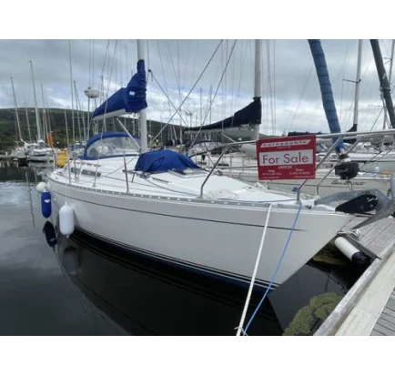 This 2000 Beneteau 361 Clipper is a cruising yacht with good sailing performance. The boat has a white GRP hull with a white superstructure and decks with non-slip surfaces, stainless steel stanchions, a pulpit, and a self-draining cockpit. The B&G navigation equipment includes a 2021 Depth Gauge, a 2021 Speed/Log, a 2023 Windspeed/Direction, a 2021 fixed VHF Radio, and a Vulcon 7 chart plotter.