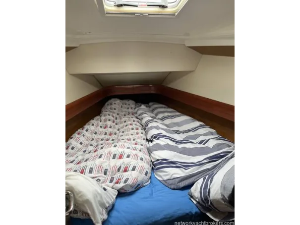 Two sails are listed both 2007 One Genoa (roller reefed) replaced 2024 One Mainsail (slab reefed) Lazy jacks fitted Al running rigging is in good order and is led aft to the cockpit via organisers to jammers and self tailing Harken control winches. The vessel is sloop rigged and all masts and spars are aloy by Seldon