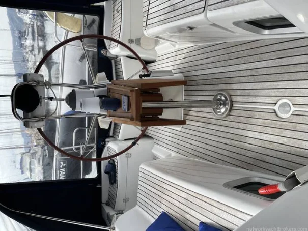 Wheel steering Access to stern bathing platform Teak deck and seating in cockpit Cockpit storage lockers Custom built cockpit table