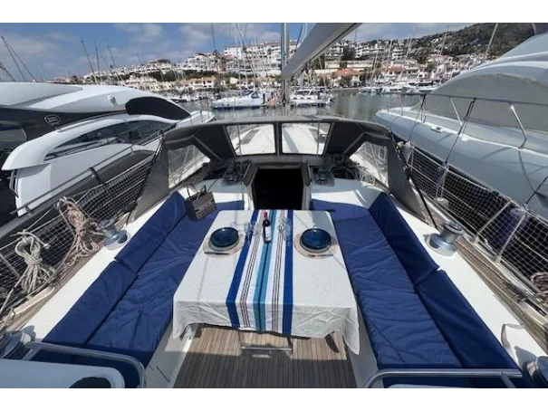 Ha sido profesionalmente mantenido y con un uso muy ligero. Está impulsado por un motor diésel Volvo Penta D3-110 con solo 450 horas de motor. Equipa propulsor de proa, generador, aire acondicionado, lavadora y un completo paquete de electrónica nueva, que incluye radar, piloto automático, GPS y AIS.Su cubierta de teca, winches eléctricos, velas enrollables y un completo cerramiento de bañera hacen que la maniobra y la vida a bordo sean fáciles y agradables. Está registrado bajo bandera francesa, con IVA pagado y se encuentra en Barcelona.Con un solo propietario desde nuevo y nunca utilizado para chárter, este yate espera nuevas aventuras. El propietario lo pone en venta para comenzar una nueva etapa en su vida.