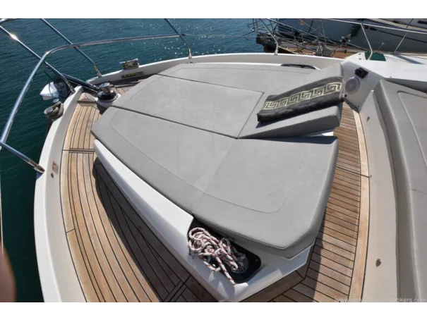 Forward sun-pad with adjustable backrests, sofa seating, anchor and windlass
