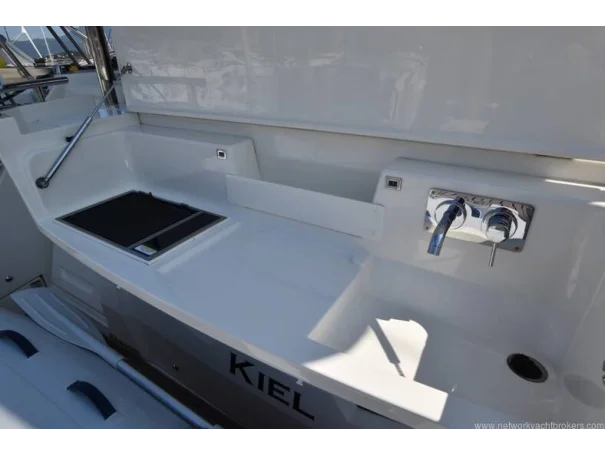 Teak-laid cockpit and swim platform