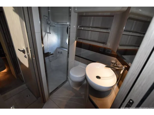 Absolute 50 FLY (2023) luxury flybridge motor yacht for sale, VAT paid and turnkey. Italian design, advanced engineering, and exceptional comfort in a sub-50ft package. Pristine, like-new condition with teak decks, refined interiors, and full-beam master suite. Seakeeper gyroscopic stabilizer delivers outstanding comfort at anchor and underway. Tropical-rated air conditioning and water maker enable independent, extended cruising. Efficient Volvo IPS propulsion offers precise handling and performance with joystick control. Expansive flybridge, cockpit, and light-filled salon maximize living space usually found on larger yachts. Premium finishes and storage throughout. This Absolute 50 FLY 2023 stands out for buyers seeking style and technology. Keywords: Absolute 50 FLY for sale, 2023 Absolute yacht, Seakeeper, Volvo IPS, flybridge yacht, VAT paid, water maker, tropical air conditioning, luxury motor yacht. Accommodation :