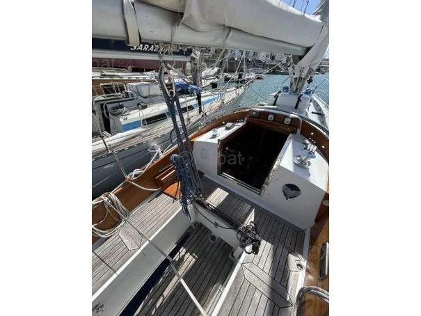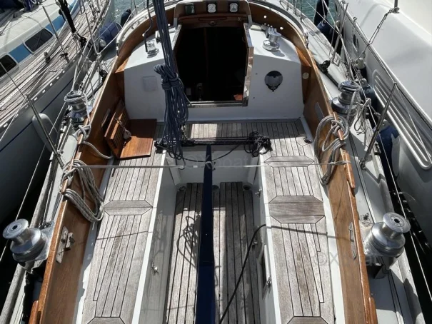 The interior layout is superb and well cared for. The varnishes are perfect. At the front, there is a double cabin. The saloon is equipped with two settees/berths, a large chart table and a navigator's berth.