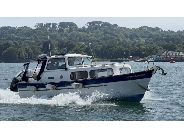 This 1992 Hardy motor cruiser, designed by David & John Hardy and built by Hardy Marine Ltd, is a robust and versatile vessel, ideal for coastal cruising or inland waterways. With a solid GRP semi-displacement/planing hull, she combines performance with stability. The Volvo Penta AD31B turbo diesel engine has been regularly serviced, ensuring reliable operation. Well-equipped with quality navigation aids, including a Navman chartplotter, fishfinder, Autohelm pilot, and VHF DSC radio, she offers confident handling and ease of navigation. The spacious rear cockpit provides comfortable seating for 6+ and includes ample storage, a helm station, and easy access to the well-appointed saloon. Accommodation is generous, sleeping up to 4 with a forward V-berth and a convertible dinette berth. The galley features a four-burner cooker and stainless sink, while the separate heads compartment adds cruising comfort. Additional features such as a bow thruster, trim tabs, diesel cabin heating, and a 240v shorepower system round out a comprehensive and practical cruising package. This Hardy is a well-maintained example, ready for new adventures.