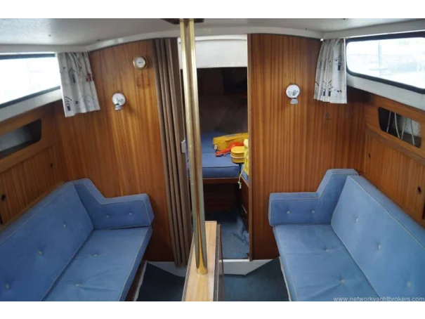 The LM 27 offers 6 berths in a saloon and a forward cabin. The saloon perimeter seating converts into two double beds and there is a folding table. There is ample storage space as well. The forward cabin has a V-berth and more storage space. There is a galley with a sink and a cooker.