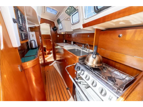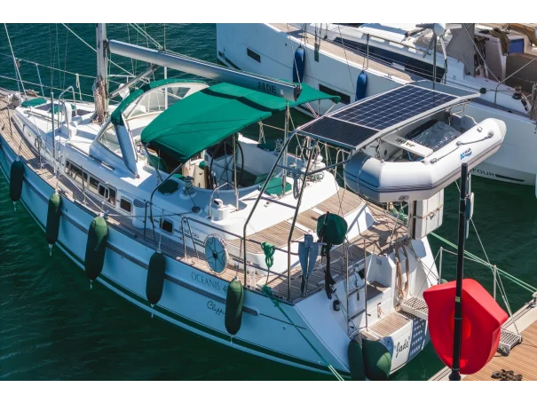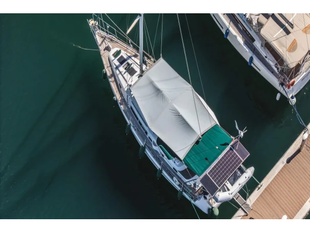 The Oceanis 40 CC is widely appreciated for its stable hull, protected cockpit, and generous aft cabin — made possible by a beam carried well aft. JADE benefits from thoughtful upgrades including recent solar/battery systems, bow thruster, and a comprehensive cruising inventory. Whether you're heading offshore or planning a long Ionian summer afloat, this yacht is ready to go — with everything from cookware to a kayak already aboard.