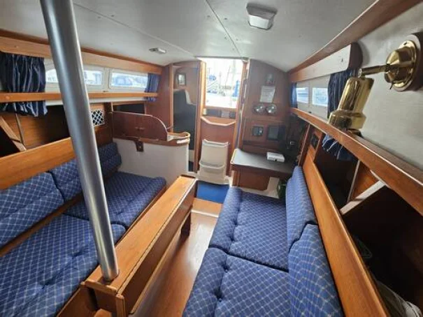 This boat offers a comfortable interior with a bright saloon, practical galley, and cozy berths, making it perfect for family cruising or weekend getaways. Don't miss the chance to own this versatile and capable cruiser. Call us today to arrange a viewing or for more information. 01202 669554 Accommodation : Saloon Seating to port and starboard Extending fold out table Additional grab rails fitted port and starboard in saloon Upgrades from original spec: Curtain rails and pelmets Leaded light cabinets Lockers lined with carpet and veneer Storage lockers throughout Chart table with storage below Doors on hanging locker in aft cabin