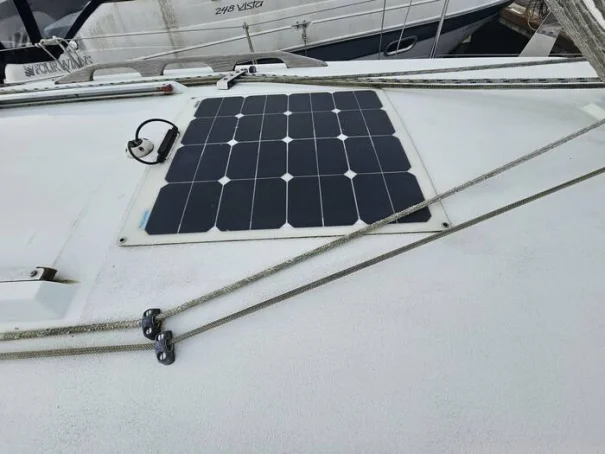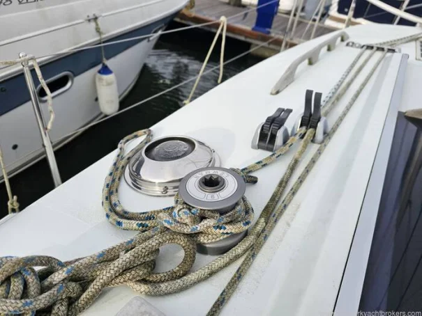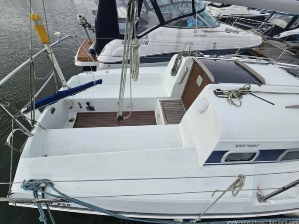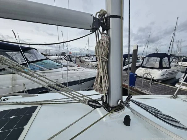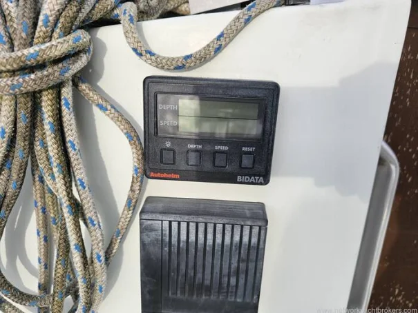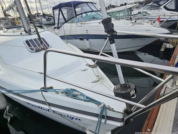 Heads Marine toilet Sink with cold water Storage lockers Inventory : Warps and fenders Bimini Anchor Antifouled March 2025 Manual bilge pump Simrad RD68 DSC VHF radio Garmin GPS 128 Autohelm Bidata speed and depth Compass Avon dinghy with outboard available under separate negotiation. Mechanical : Yanmar IGM10 9hp diesel engine Only 359.5 engine hours Solar panel 2 x 12v batteries charged via engine and solar panel Fractional rig sloop New and unused furling Jib Self tacking Jib Original mainsail with 3 reefs in good condition with little use Standing rigging professionally checked and lowers replaced Adjustable backstay