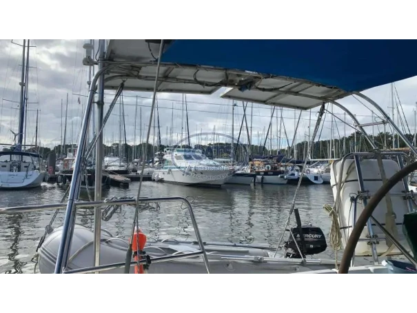 Recent Electronics Cockpit: large cockpit with a central bimini and dodger for optimal protection. Rear arch: accommodating solar panels, wind turbine, a dinghy with engine (3.5 HP, 4-stroke). Engine: Perkins Prima 60 hp, maintained annually, shaft seal changed in July 2024. Maintenance and History: