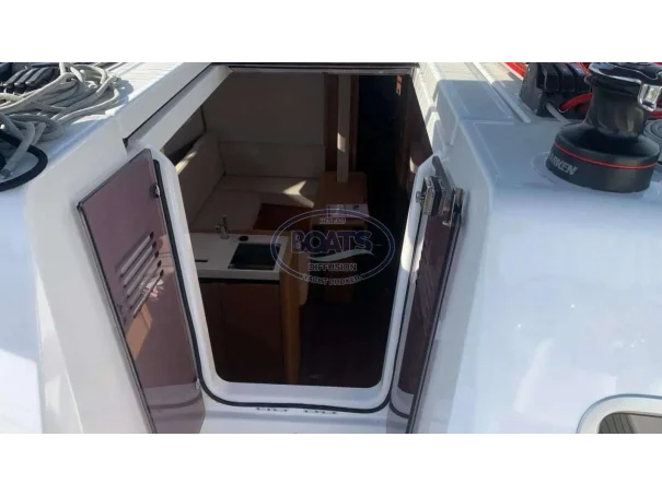 Preference Pack (dolphin seat & bow roller, electric windlass 1000 W with dual control + chain counter, 230 V power supply, USB in cabins, Navicolor screen + battery monitoring, "Luxe" oven with grill, Corian worktop, additional AGM battery, 40 A charger, LED lighting and premium interior finishes)