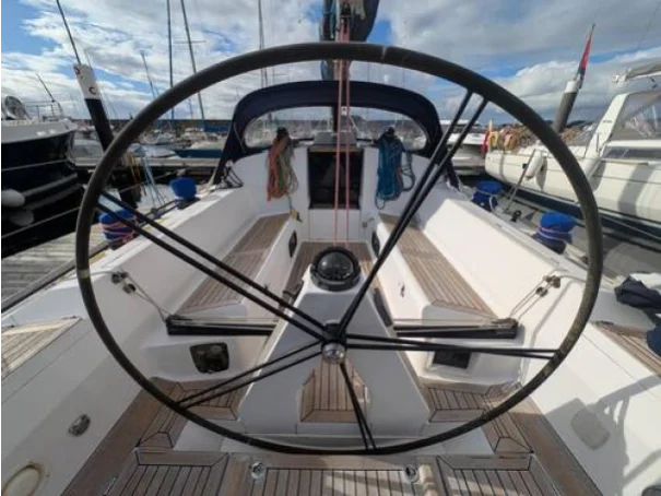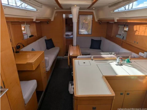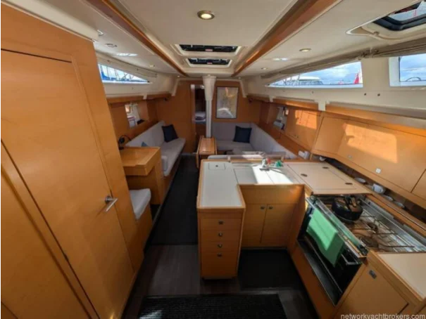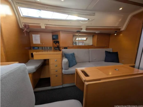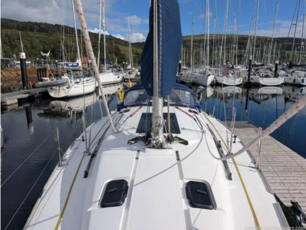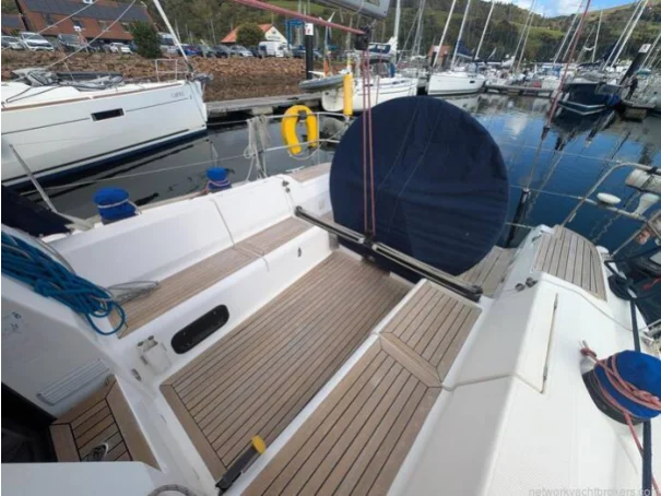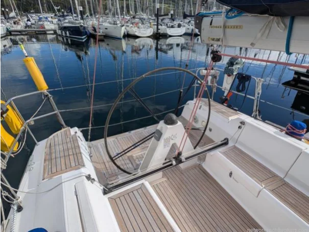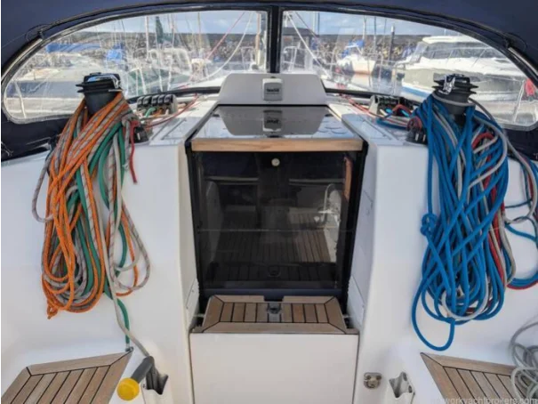 Single-piece GRP moulded deck incorporating coachroof superstructure and self-draining cockpit.