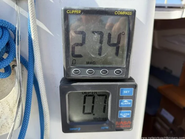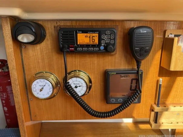 • All new mast routed cables (New Oct 2021) • Masthead wind unit (New Oct 2021) • Whipflex stainless steel whip antenna (New Oct 2021) • Masthead Hella trilight, LED compatible (New Oct 2021) • Mast Steaming Light (New Oct 2021) • NASA Marine Target 2 Depth • Clipper electronic compass • Nasa Marine Target Speed & Distance log (inoperative but replacement fitted at chart table) • Clipper Wind unit • 2 x 12V well-functioning batteries (1 new Sep 2025), charged via outboard motor & stern mounted wind generator (Dolphin Ampair) • ICOM IC-M330GE (New 2021) fixed DSC VHF Radio • Lowrance HDS-5M cockpit mounted chart plotter • Cabin lighting • Electronic bilge pump • USB charging port