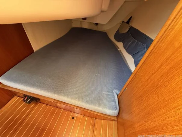 Sleeps 4 adults comfortably Forward V-berth Aft double berth under cockpit Saloon with settees Compact galley: sink, two-burner stove Heads compartment with marine toilet & sink