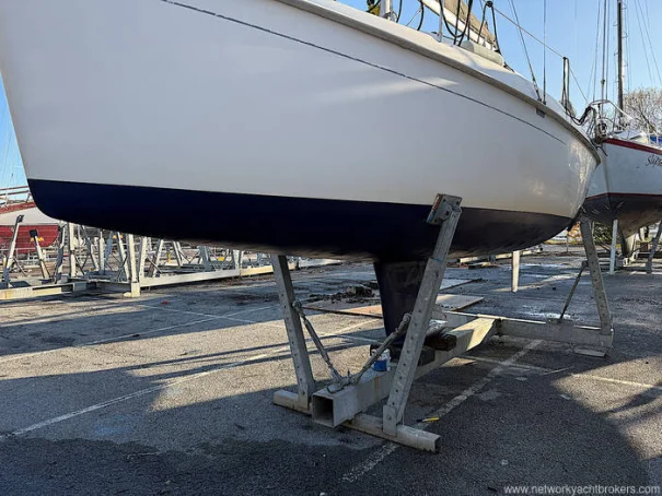 New standing rigging, incl. rigging screws & mast base assembly (2021). Riggers inspection found mast, spreaders etc to be in good condition. Entirely new running rigging (May 2021), colour coded, every line Liros Herkules braid on braid polyester Transom hung rudder with tiller steering Fractional sloop rig Slab reefing mainsail with lazyjacks and boom packing system Furling genoa Sail storage bags in good condition Spinnaker halyard, though no spinnaker sail Two Harken standard non-tailing winches (Cleaned and re-greased Aug 2021), with 2 winch handles (tube of Harken winch grease spare) Masthead wind unit (new Oct 2021) Removable 25L fuel tank in secure position within cockpit locker (vents overboard) Campingaz 907 (2.72kg) butane bottle, & bottle cradle located in cockpit locker (vents overboard)