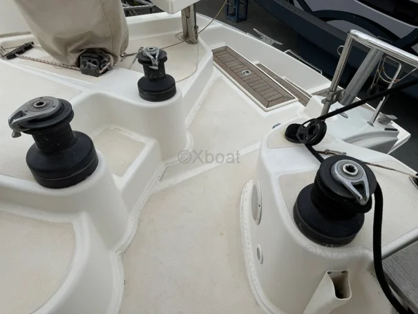 A set of 2017 sails including mainsail, solent, and gennaker allows for rather dynamic sailing with perfect visibility thanks to the 2 steering stations on the console at the stern. The 2 centerboards offer a very appreciable windward performance.
