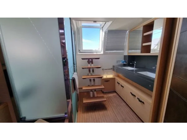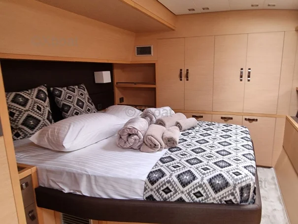 The LAGOON 630MY is certainly one of the leaders in the market, and this 2016-built unit is an opportunity not to be missed: in the owner's version with 5 double cabins, it offers a beautiful owner's suite aft port side, 3 double VIP cabins, and one with 2 bunk beds amidships starboard. The salon is bright, thanks to its light woodwork, and is very functional with its 2 telescopic tables; the kitchen faces it, separated by a large bar, promising convivial moments.