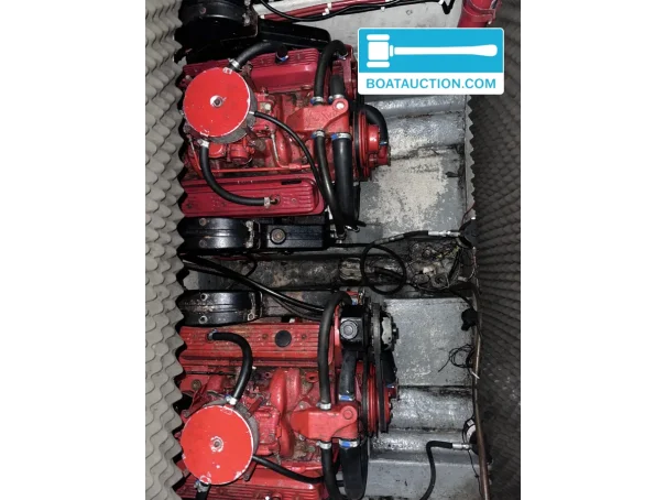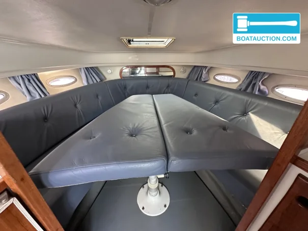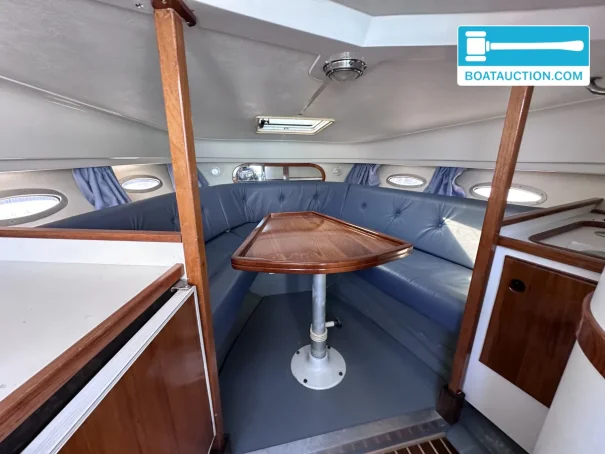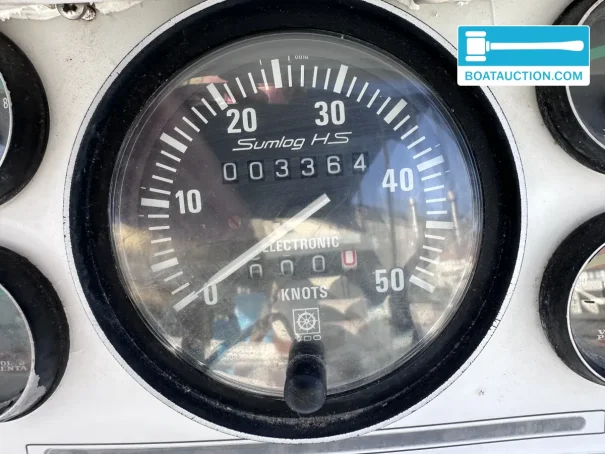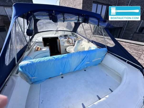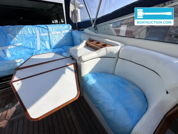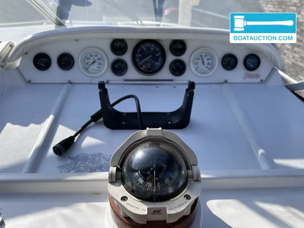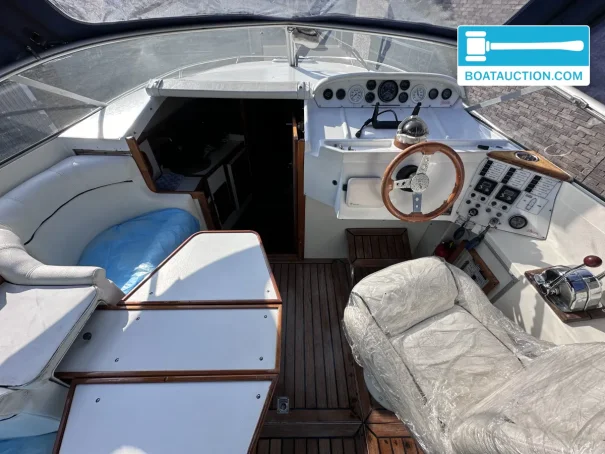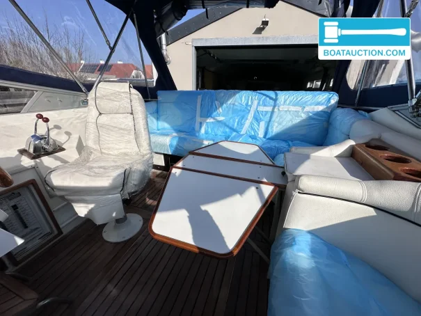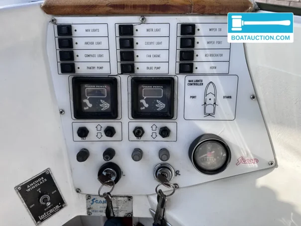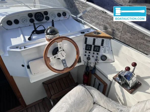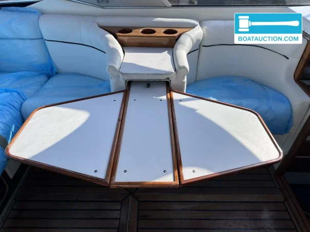 The boat is equipped with two Volvo Penta inboard engines, each with a power of 199 kW (270 hp), both from the year 1989. The engines are electrically started and run on gasoline. Propulsion is via a stern drive with propeller drive. The fuel tank has a capacity of 480 liters, providing a generous range. The cruising speed is around 25 knots (approximately 46.3 km/h), while the maximum speed can reach about 45 knots (approximately 83.3 km/h). Onboard instruments include a fuel tank gauge and tachometer.