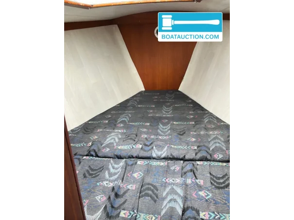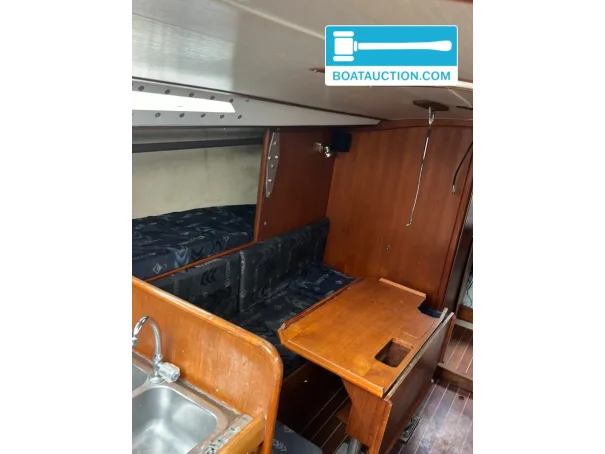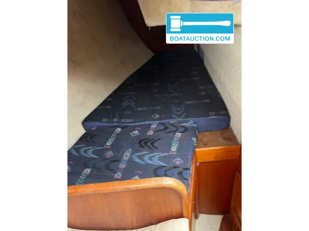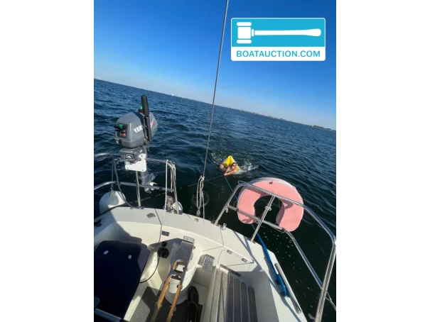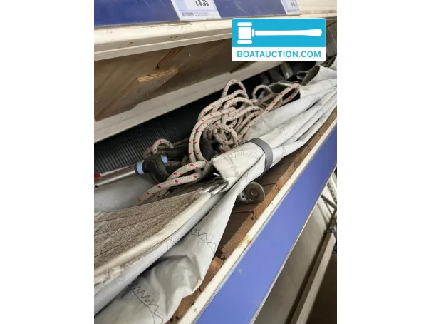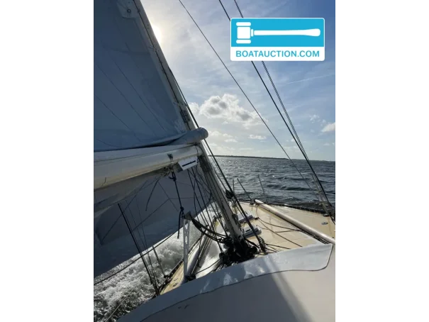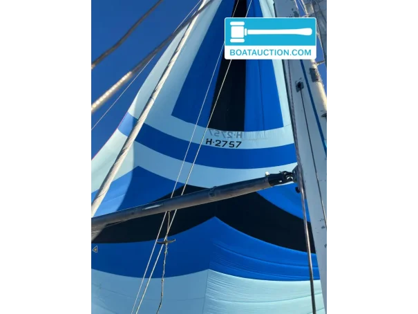In terms of navigation, the Kalik 33 is equipped with an autopilot, GPS, and compass. The sail plan consists of five sails: a mainsail, jib, genoa, storm jib, and spinnaker. The sails are made of Dacron and are of sport quality (North Sails). The genoa is equipped with a reefing system. There is one aluminum mast present. The boat features sporty rigging and deck layout, which contributes to the sailing performance. This makes the ship suitable for both recreational sailing and racing.