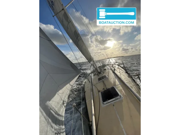 The Kalik 33 is a Belgian-made sailing yacht, designed by the renowned yacht designer De Ridder and built at the Lewin shipyard in 1977. This model is known for its sporty sailing characteristics and solid construction. The hull is made of polyester and features a V-bottom, which contributes to the stability and course stability of the ship, even in stronger wind conditions. With a length of 10 meters, a width of 3.50 meters, and a draft of 2 meters, this yacht is suitable for both inland and coastal waters.