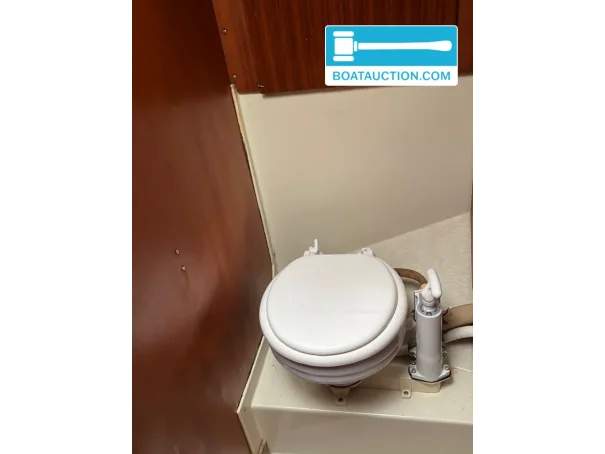 On deck, the Kalik 33 is equipped with a sprayhood (new, yet to be installed), pulpit and pushpit, fenders, lines, a guardrail, and a swim ladder. An anchor with a line is available for anchoring. The cockpit is self-draining, and there is a lifebuoy on board. A bilge pump is not present.