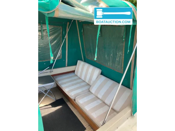 The boat has a water tank with a capacity of 100 liters. Heating is not present, making the boat particularly suitable for use in the warmer months. The equipment further includes a cockpit tent, tarpaulins, pulpit and stern seats, fenders, lines, a swim ladder, and a swim platform. A dinghy is not included.