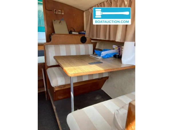 The interior of the Polaris 770 is functionally designed and offers sleeping accommodation for four people. There are two fixed berths in the bow of the boat and two additional berths on the convertible dinette. The cabin is equipped with a manual toilet that discharges directly into open water. The kitchen is equipped with a two-burner gas stove and provides basic facilities for preparing meals on board. Mattresses are present, as well as a dining area that serves as a living space.