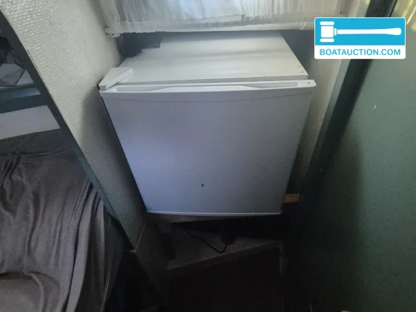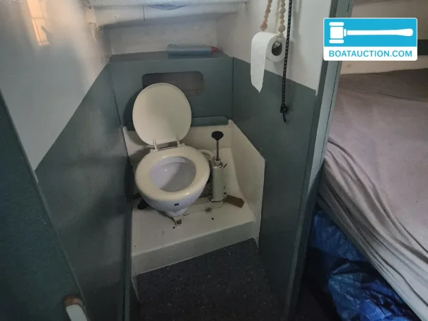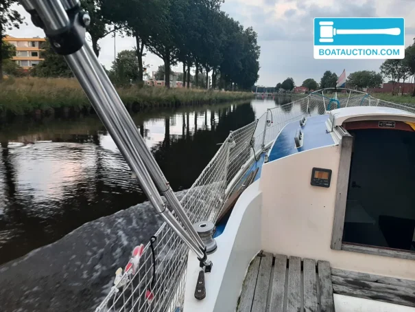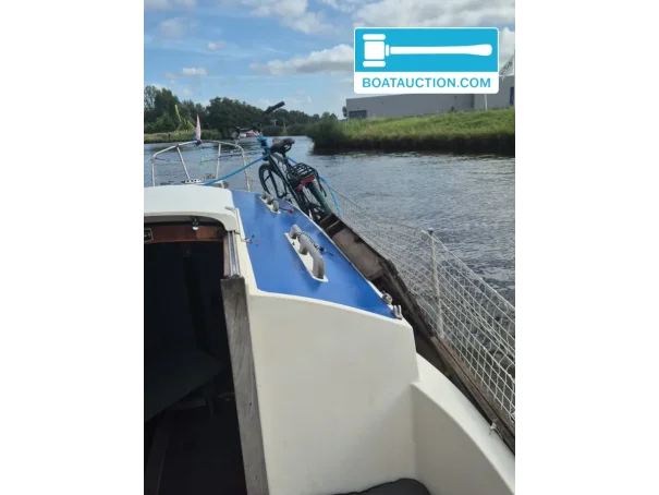 The boat is equipped with a Volvo Penta MD2B inboard diesel engine with a power of 16 hp. This two-cylinder engine, built in 1976, is electrically started and operational. The fuel tank has a capacity of 22 liters. Currently, the engine runs on a temporary plastic fuel tank. The cruising speed is around 12 km/h, with a maximum speed of approximately 14 km/h. The engine is equipped with an alternator and shore power connection, but the electrical installation on board needs to be checked. There is one battery with a capacity of 110 Ah (12V).