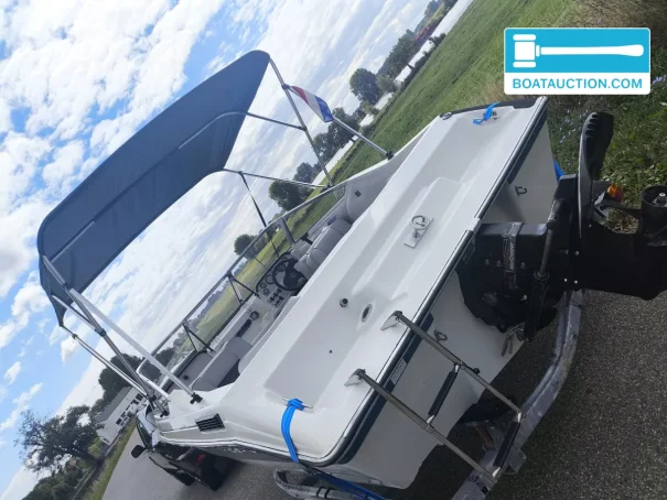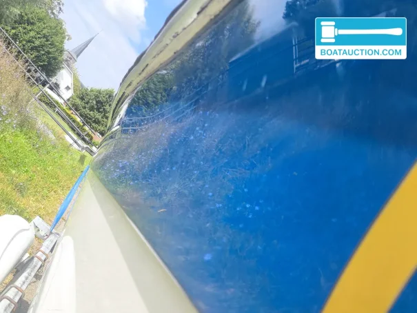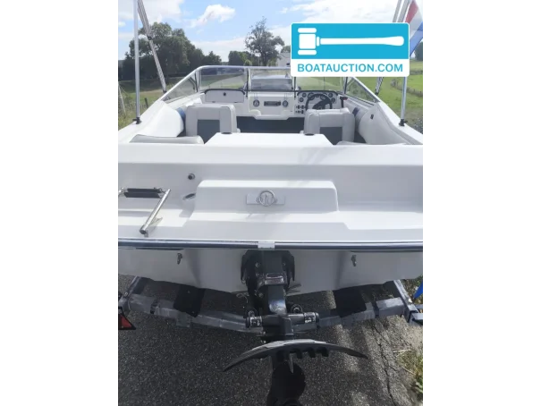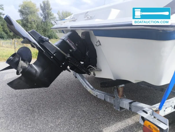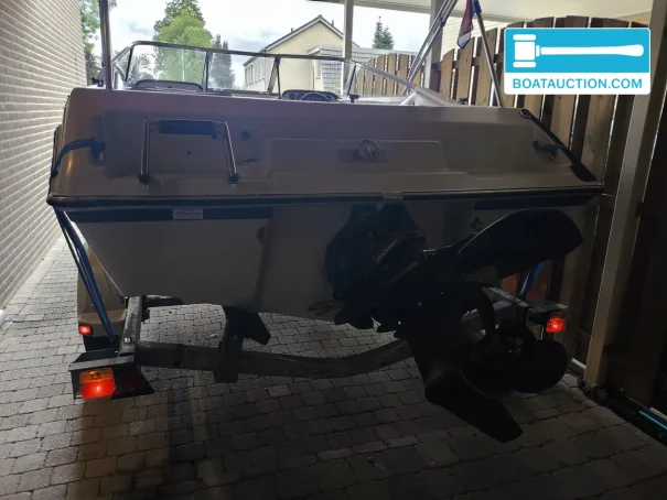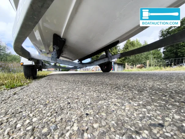 The boat comes with an EZ Loader road trailer. This American trailer is 6.50 meters long and 2.40 meters wide and is equipped with a single axle with 15-inch wheels. The trailer is unbraked and non-tiltable and does not have a license plate. A trailer winch is available for easy loading and unloading of the boat. The total weight of the combination is approximately 1120 kg.