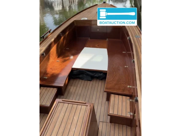 The interior of the sloop is fitted with teak paneling, benches, and a sun deck with cushions. These elements were added during a renovation by the previous owner, prior to the purchase in 2020. The sloop can accommodate eight to ten people during a cruise. When using the sun deck, there is space for about six people.
