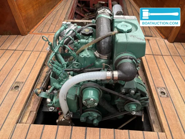 In 2024, a refurbished Volvo Penta MD2020 diesel engine was installed by Yacht Service Hoorn. This inboard engine delivers 19 hp and is equipped with a reversing gear. The engine is started electrically. The battery was replaced in 2021, and the previous battery, which is still functional, is included in the sale. Annual engine maintenance has been performed by Yacht Service Hoorn, with maintenance reports available from 1992, including invoices and photos.