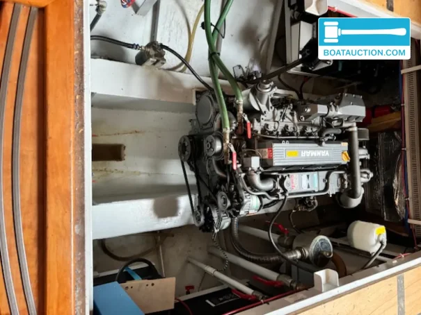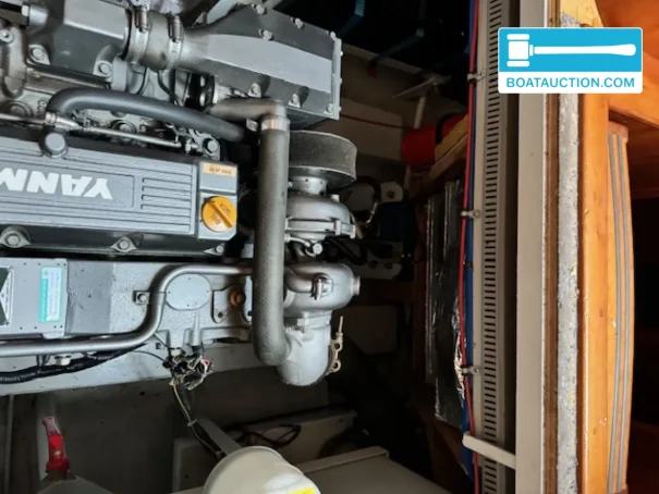 The propulsion consists of a Yanmar 4LH-HTE inboard diesel engine with a power output of 140 hp. This four-cylinder engine is electrically started and has a recorded number of operating hours of approximately 1,400. The engine is from the year 1998 and is fueled from a diesel tank with a capacity of 700 liters. Additional measuring instruments such as an oil pressure gauge, tachometer, and fuel tank gauge are present.