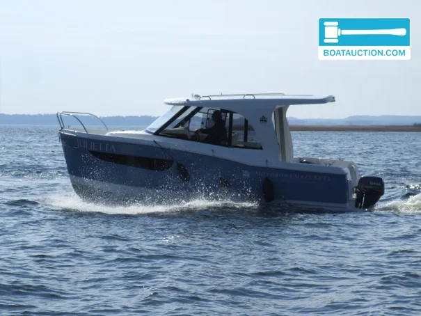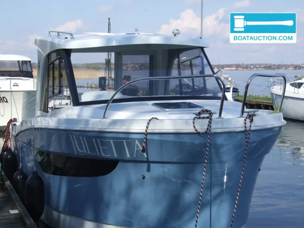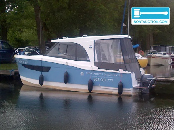The Janmor 700 is a motor yacht from 2017, built with a focus on comfort, ease of use, and space utilization. With a length of 7.50 meters and a width of 2.90 meters, this vessel offers ample living space for families or small groups. The hull is made of polyester, contributing to a relatively low weight of approximately 2,500 kg and a low-maintenance construction. The boat is registered in Poland. Documentation such as the original invoice and manual are available.