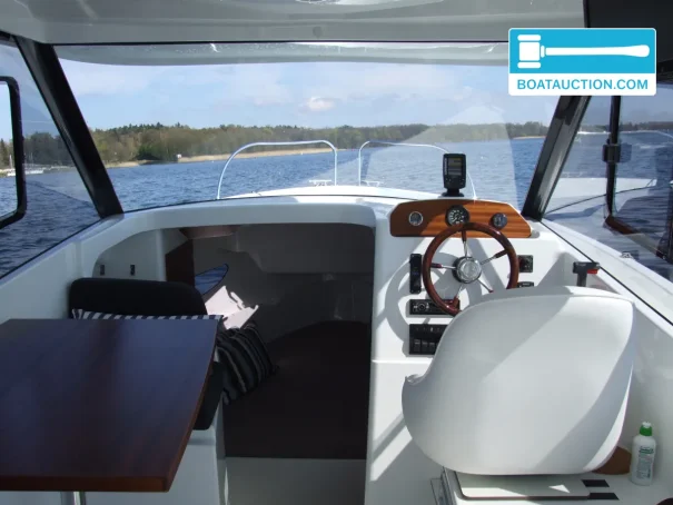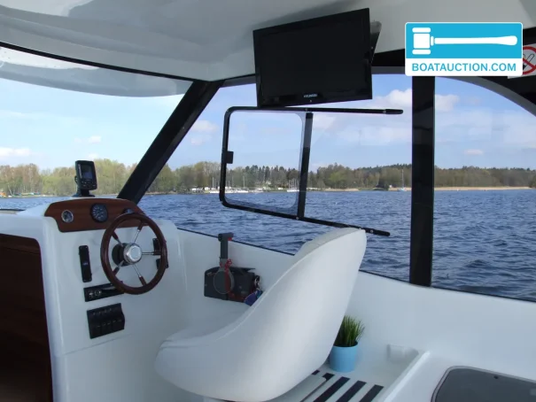 The Janmor 700 is a motor yacht with a functional layout, suitable for recreational use on inland waters. The combination of spacious living areas, practical amenities, and straightforward controls makes the vessel accessible to both novice and experienced water sports enthusiasts. Thanks to the low clearance height and shallow draft, the vessel is deployable in a wide range of sailing areas. The available documentation and complete equipment make this vessel ready for a new owner.