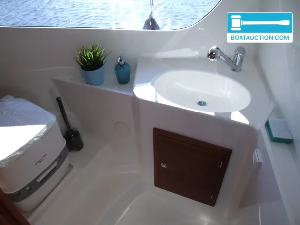 The hull is equipped with bilge keels, contributing to course stability and reducing rolling motions. Thanks to the shallow draft of 65 cm, it is possible to navigate shallow waters. The clearance height is 2.90 meters, making the boat suitable for use on lakes and canals with low bridges.