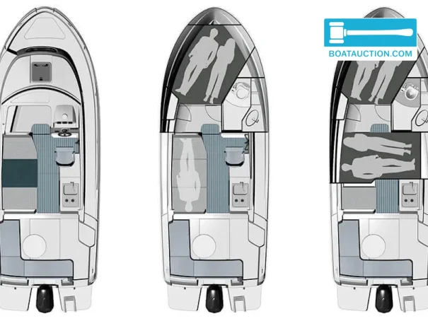 The interior space of the Janmor 700 is designed with practical use in mind. The headroom inside is 2.00 meters, providing comfortable freedom of movement. The boat has four fixed berths, divided between a closed fore cabin and an open sleeping area midships. Additionally, an extra sleeping place can be created in the salon by converting the sofa into a bed.