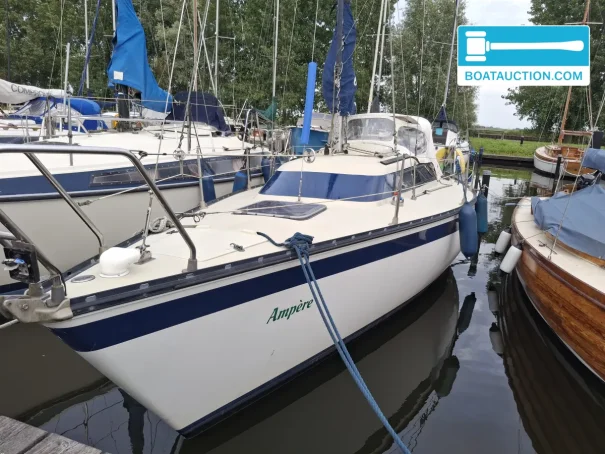 This Friendship 26, built in 1981 at the Balk shipyard and designed by Jac. de Ridder, is a classic polyester sailing yacht with a length of 8 meters. The ship is suitable for both novice and experienced sailors looking for a functional and characterful yacht for inland waters and lakes. The boat is named "Ampere" and has a rich history, including a voyage from Flensburg and years of trips in Friesland.