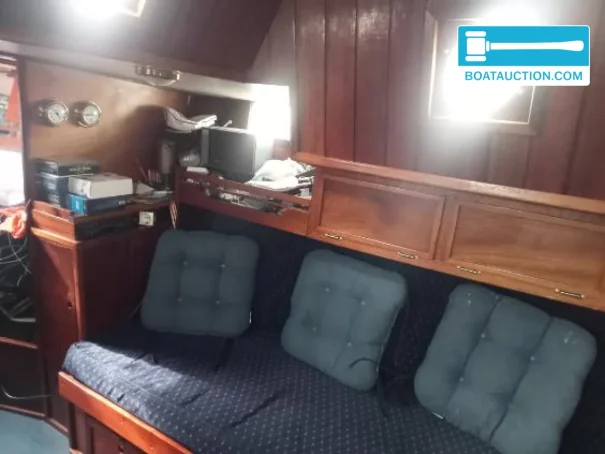 The boat comes with the engine manual and a maintenance log. The last time the ship was taken out of the water for maintenance was in 2020. No recent antifouling treatment has been performed. Known points of attention include rust formation on the exterior and a mast that needs repainting.